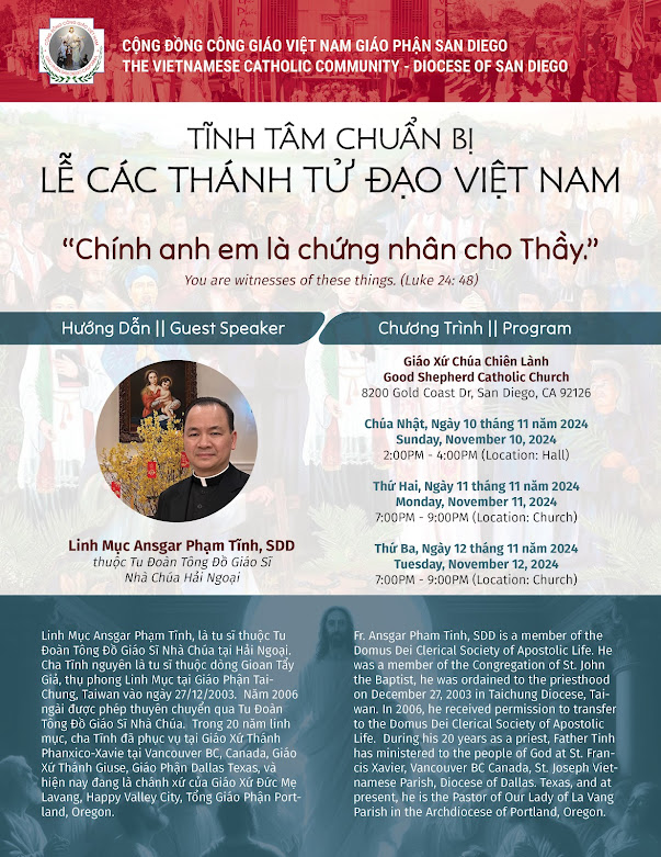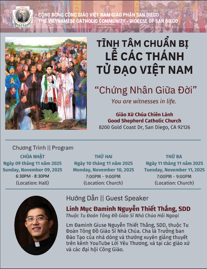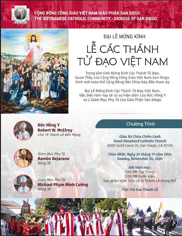 Pastor in Charge: Lm. Giuse Phạm Văn Phiên – (858) 231-6325